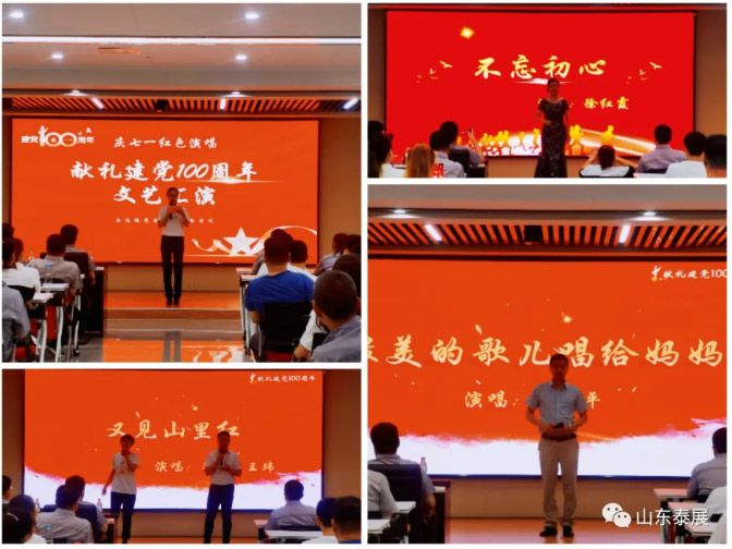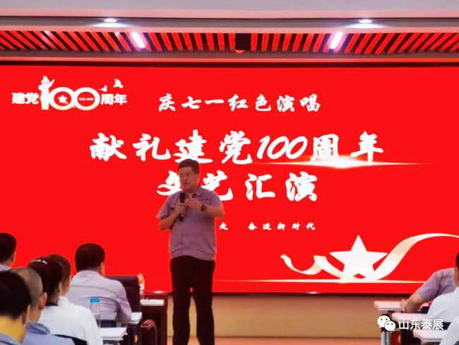 為隆重慶祝中國共產(chǎn)黨成立100周年,進一步加山東泰展機電科技股份有限公司黨員隊伍的建設。6月30日18點,山東泰展機電科技股份有限公司結合“學黨史、知黨情、強黨性”的總體思路,以“百年禮贊頌黨旗,同心起航唱紅歌”為主題,組織公司員工歡聚一堂,通過唱紅歌、詩朗誦等表演形式慶祝中國共產(chǎn)黨成立100周年,加強公司職工及黨支部成員對黨的光輝歷史的了解,促使公司職工積極向黨組織靠攏,增強愛黨愛國的責任感和使命感。